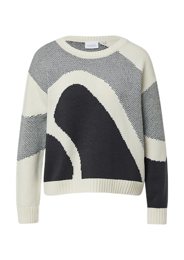 Entdecken Sie den Pullover mit Intarsienmuster aus weichem, elastischem Strick. Der Relaxed Fit und der Rundhalsausschnitt mit Rippblende verleihen Ihnen einen lässig-femininen Look. Das abstrakte All-over-Muster und die Rippbündchen machen dieses Casual-Piece zu einem modischen Statement. Stylen Sie ihn vielseitig für einen entspannten oder eleganten Auftritt.